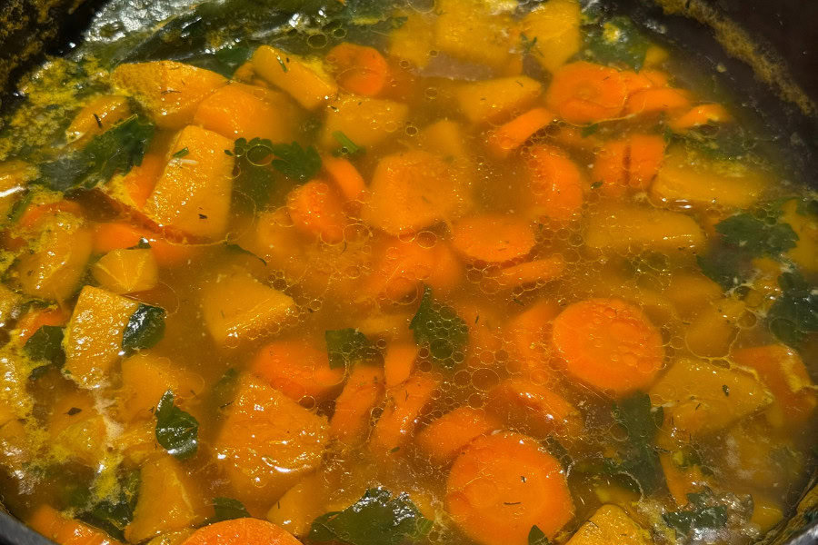 - Simmer for approximately 15-20 minutes or until the vegetables are tender